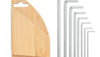 Zestaw kluczy sześciokątnych, imbusowych, w bambusowym uchwycie. Zawiera klucz sześciokątny ze stali węglowej z powłoką niklową o następujących rozmiarach: 1 ,5mm - 2mm - 2,5mm - 3mm - 4mm - 5mm - 5,5mm - 6mm. Idealny zestaw do majsterkowania w domu. Naturalny bambusowy uchwyt nadaje stylowego wyglądu i jest świetnym pomysłem na spersonalizowany prezent. Bambus jest produktem naturalnym, mogą wystąpić niewielkie różnice w kolorze i rozmiarze poszczególnych elementów, co może mieć wpływ na końcowy efekt dekoracji.