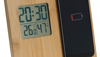 Stacja pogodowa wykonana z drewna bambusowego, z cyfrowym wyświetlaczem ukazującym: czas, temperaturę oraz wilgotność powietrza. W stację wbudowana została także bezprzewodowa ładowarka, dzięki której wygodnie naładujesz swój telefon, umieszczając go na podstawce.